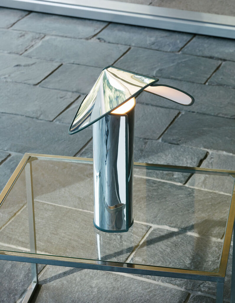 - Innowacyjna Konstrukcja: Lampa Chiara wyróżnia się unikalnym kształtem przypominającym origami, który subtelnie ukrywa źródło światła.