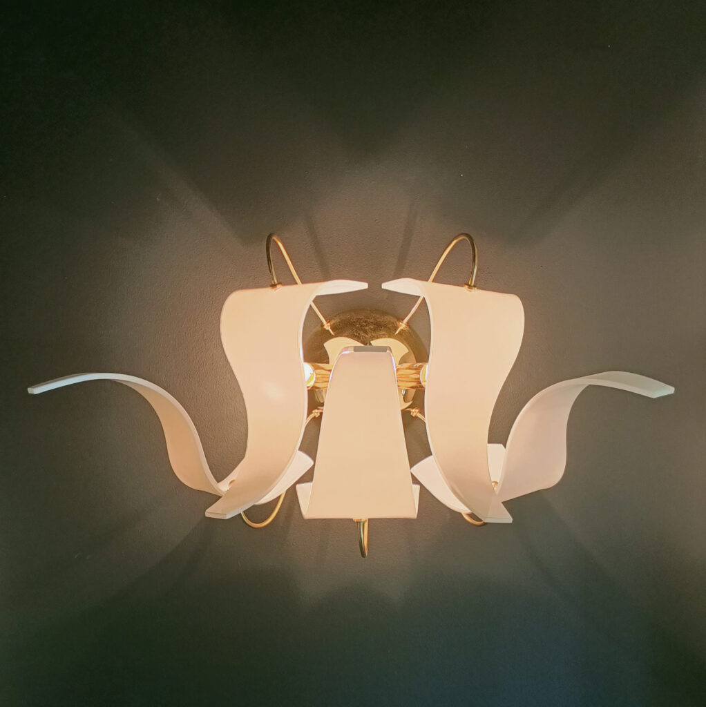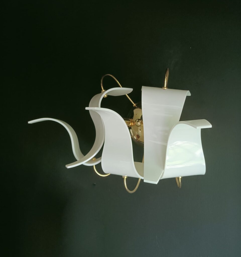 Wykonany z polerowanego mosiądzu oraz giętego, białego szkła, kinkiet Diva nie tylko oświetla przestrzeń, ale także stanowi niezwykłą dekorację każdego pomieszczenia. Jego interesujący projekt z pewnością przyciągnie uwagę i doda elegancji każdemu wnętrzu.