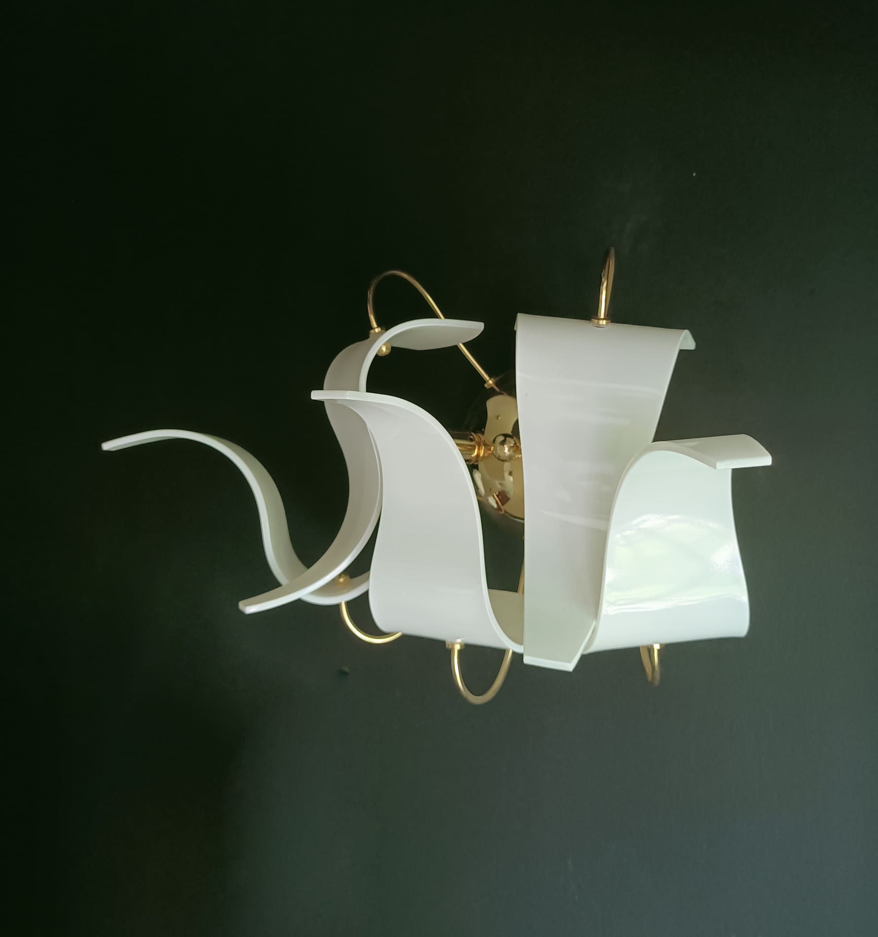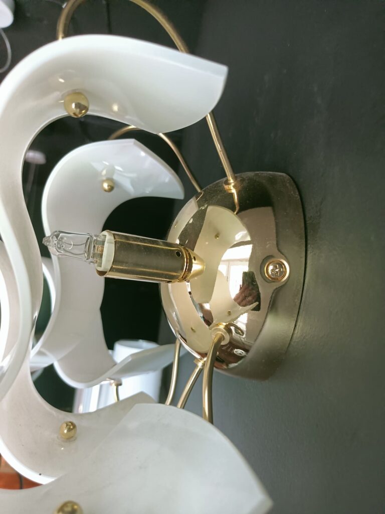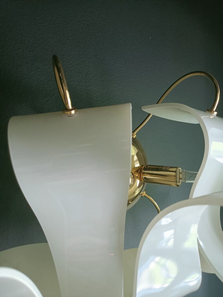 - Materiał: Polerowany mosiądz, białe szkło