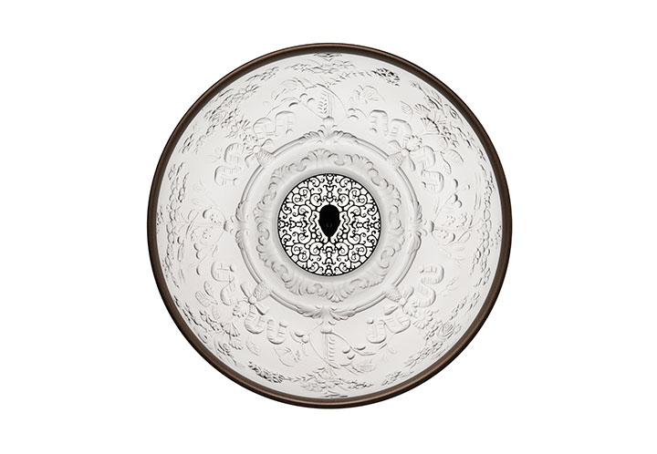 - Stylowy Klosz: Półkulisty klosz z wewnętrzną białą płaskorzeźbą w technice gipsowej, inspirowany pięknem ogrodu.