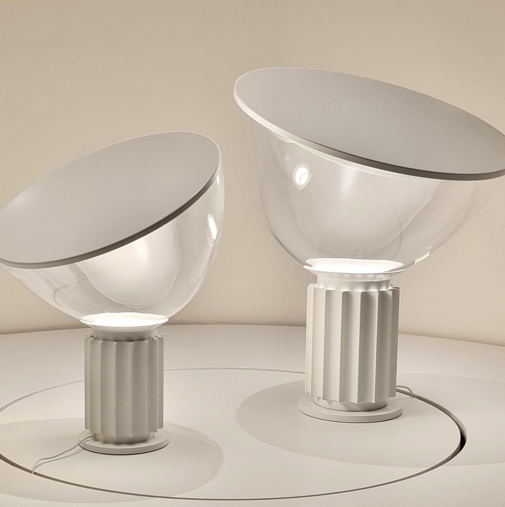 Odkryj lampę Taccia od Flos – ikoniczny model zaprojektowany przez Achille'a i Piera Giacomo Castiglioniego w 1962 roku. Charakteryzuje się eleganckim, białym kloszem z przezroczystego szkła, nowoczesnym designem i innowacyjnym systemem oświetlenia. W zestawie z 1 COB LED (2700K, 1290 lumenów). Idealna do nowoczesnych wnętrz!
