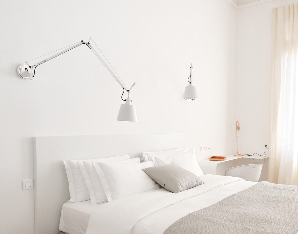 Kinkiet Tolomeo Basculante marki Artemide łączy elegancję z nowoczesnością. Wykonany z polerowanego aluminium i satynowej tkaniny, ma ruchome ramię z systemem balansowania. Idealny do nowoczesnych wnętrz, zapewnia funkcjonalność i styl. Wybierz luksusowy akcent do swojego domu!