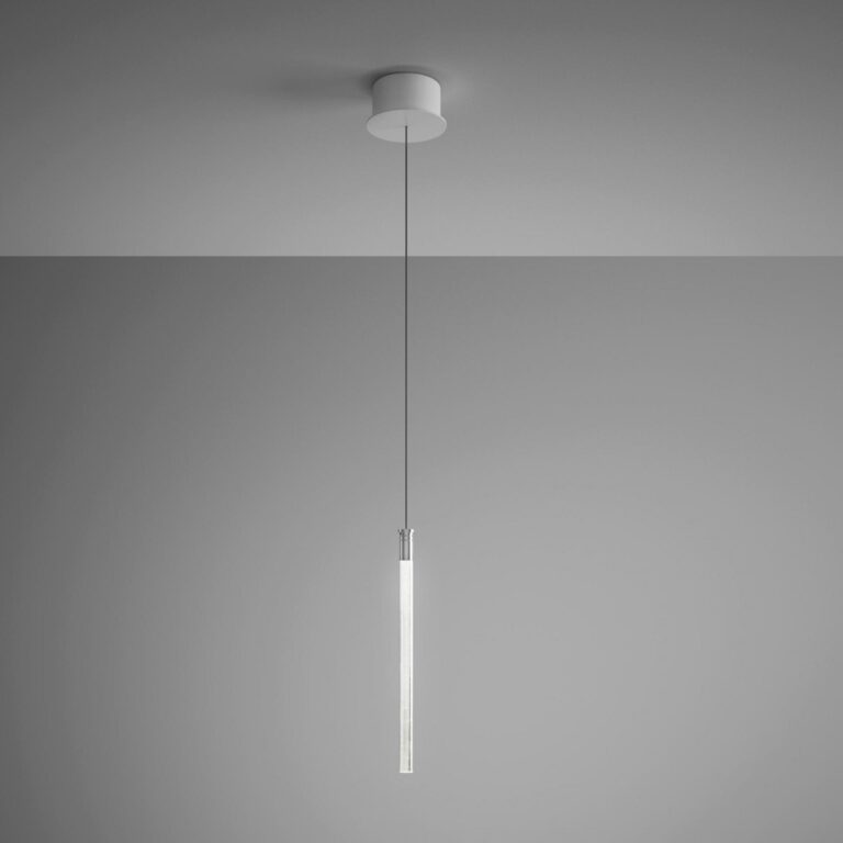 Konstrukcja klosza lampy została wykonana z wysokiej jakości anodowanego aluminium, co zapewnia trwałość oraz estetyczny wygląd. Dodatkowo, białe przewody zasilające harmonijnie komponują się z całością. Możliwość regulacji długości zawieszenia sprawia, że lampa doskonale wpasuje się w różnorodne przestrzenie.