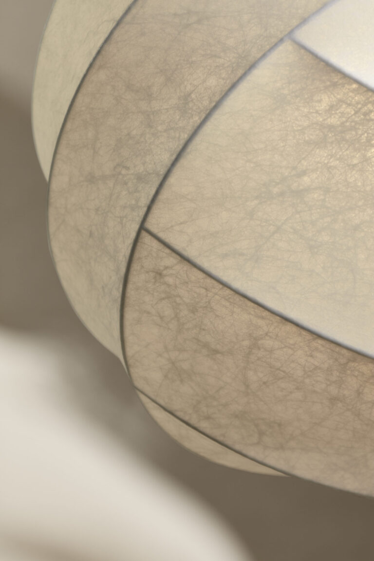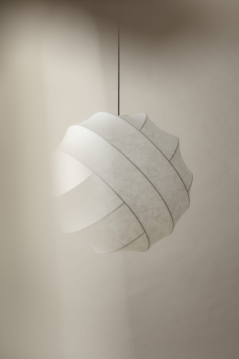 Stworzona z innowacyjnego materiału kokonowego, lampa Turner łączy w sobie delikatny blask i surową formę, oferując wielokierunkowe oświetlenie. Emituje miękkie, rozproszone światło, które nadaje pomieszczeniu przyjemną atmosferę i elegancki wygląd.